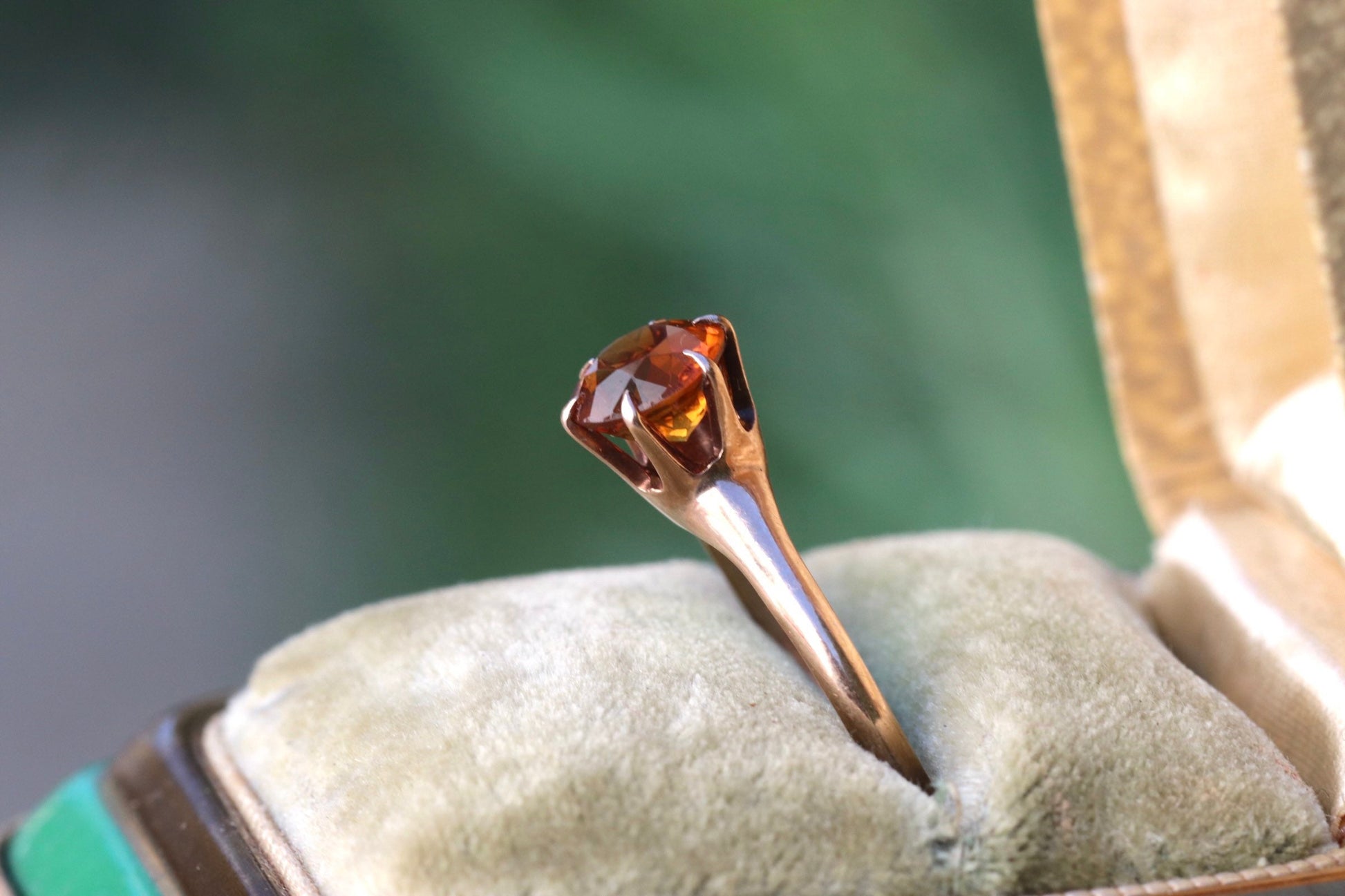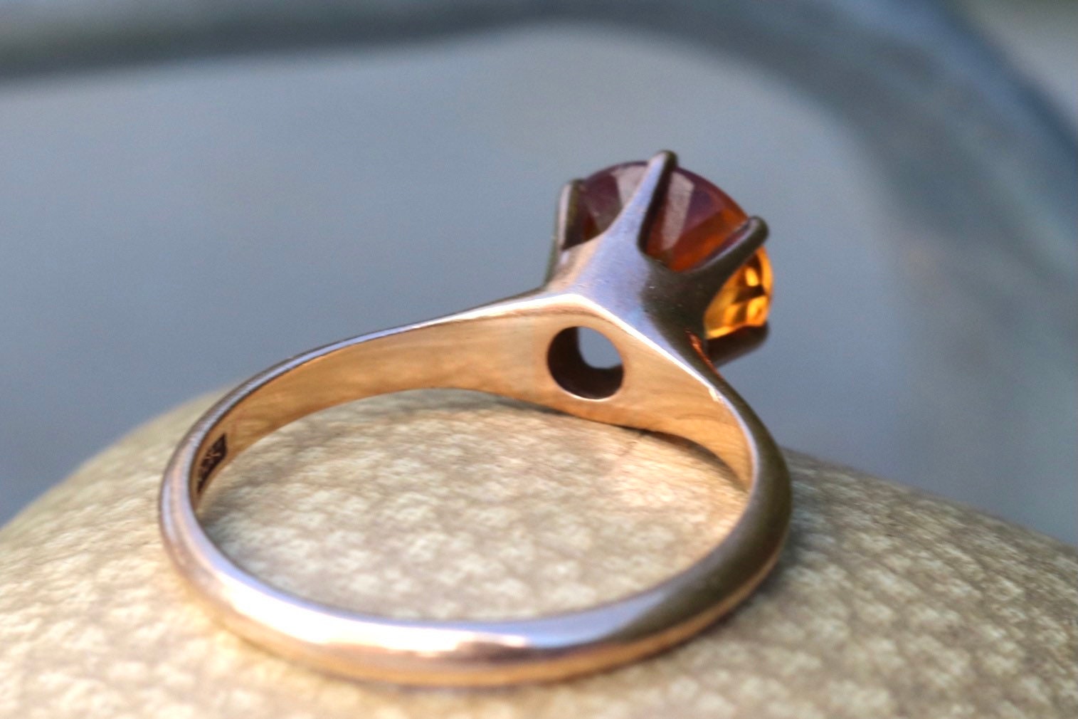 The citrine is in very good condition and measures 7.17 mm. The very precise claw prongs leads me to believe the citrine may have been added later. It sits 8mm off of the finger and weighs 2.28 grams.